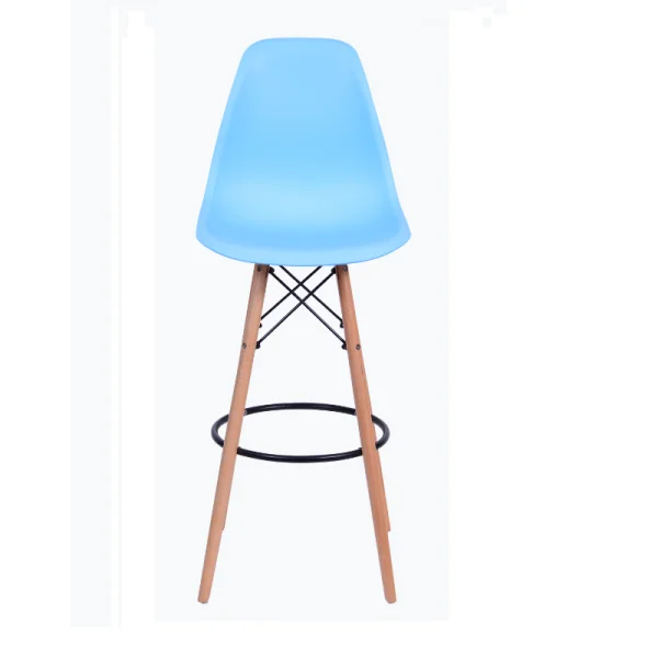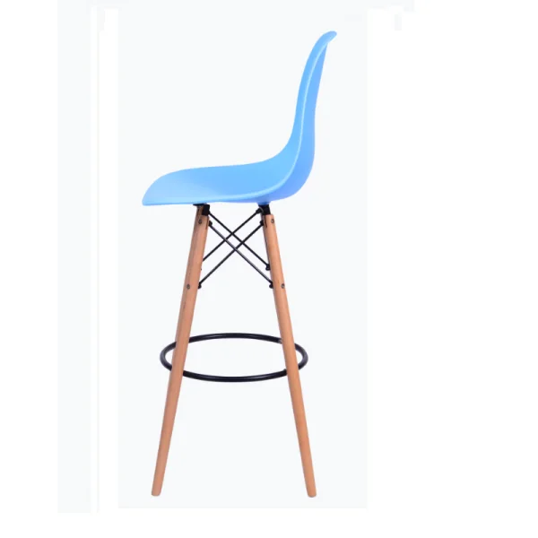 Banqueta Eiffel Polipropileno Azul Pé Madeira