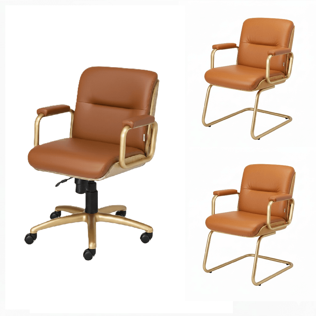 Cadeira giratória, com base em tubo de ferro e assento/encosto em compensado multilaminado com espuma e revestimento sintético .